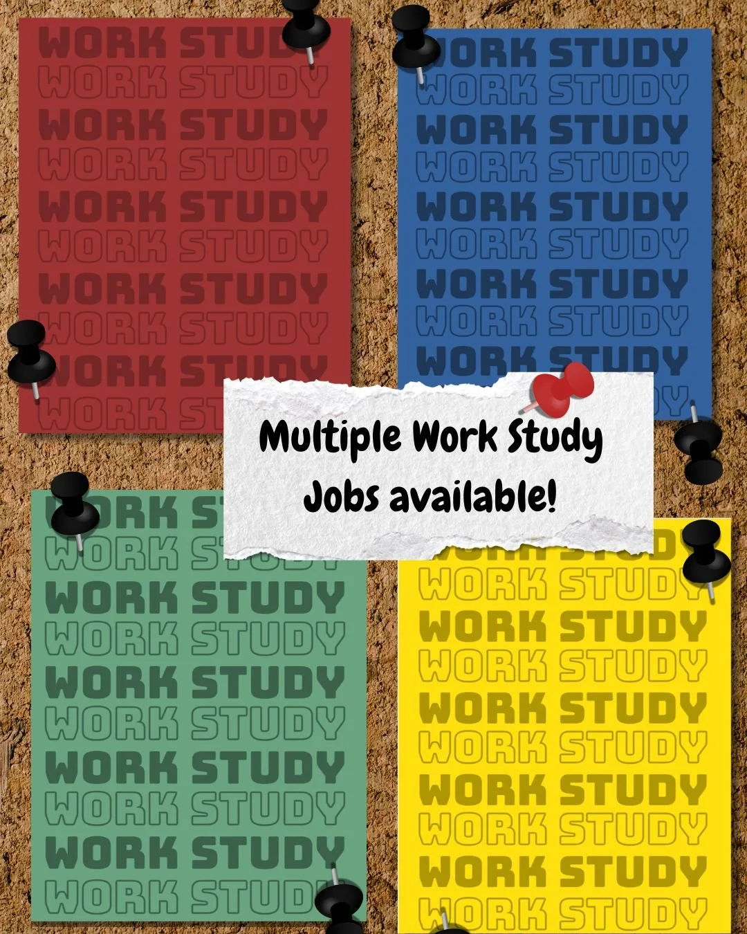 Created stylized static bulletin-board-style help-wanted posters to help students learn about available jobs on campus.