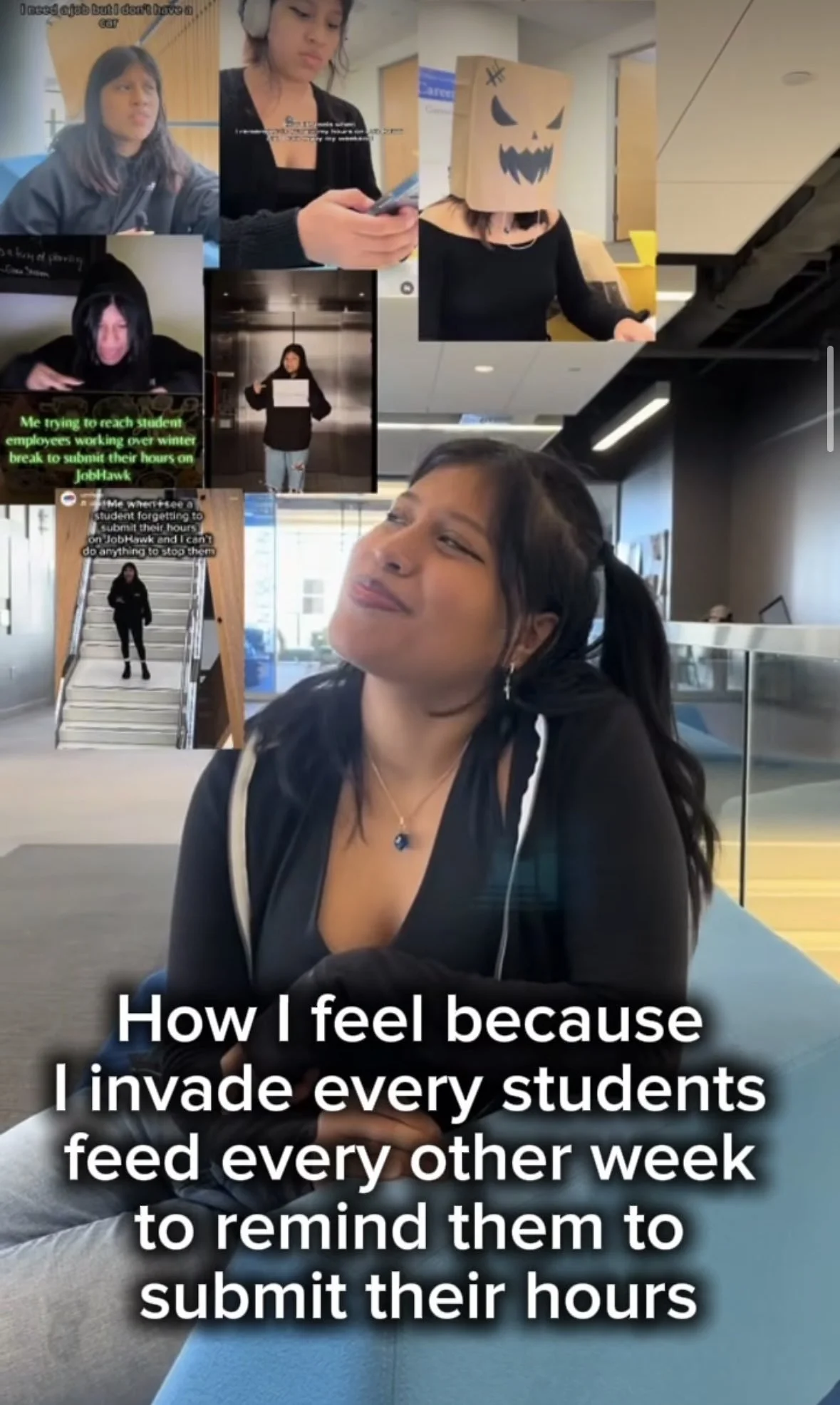 Trending audios/sounds on TikTok and Instagram to push out content for student reminders for submitting their work hours on JobHawk.